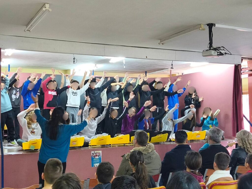 Μετά τον σύντομο λόγο της Διευθύντριας, κας Φωτεινής Σωτήρχου, του Δημάρχου, κου Στάθη Ψυρρόπουλου, της Αντιδημάρχου Παιδείας, κας Μαρή, και του εκπροσώπου του Συλλόγου Γονέων, η χορωδία της Στ’ τάξης με τη μουσικό, κα Άννα Κανάκη, τραγούδησε δύο τραγούδια. Ακολούθησε δέηση του ιερέα του Ι.Ν. Αγ . Νικολάου, πατέρα Παναγιώτη, και ο Δήμαρχος μαζί με τους εκπροσώπους των τάξεων έκοψε την κορδέλα.