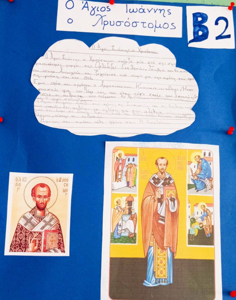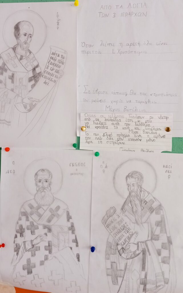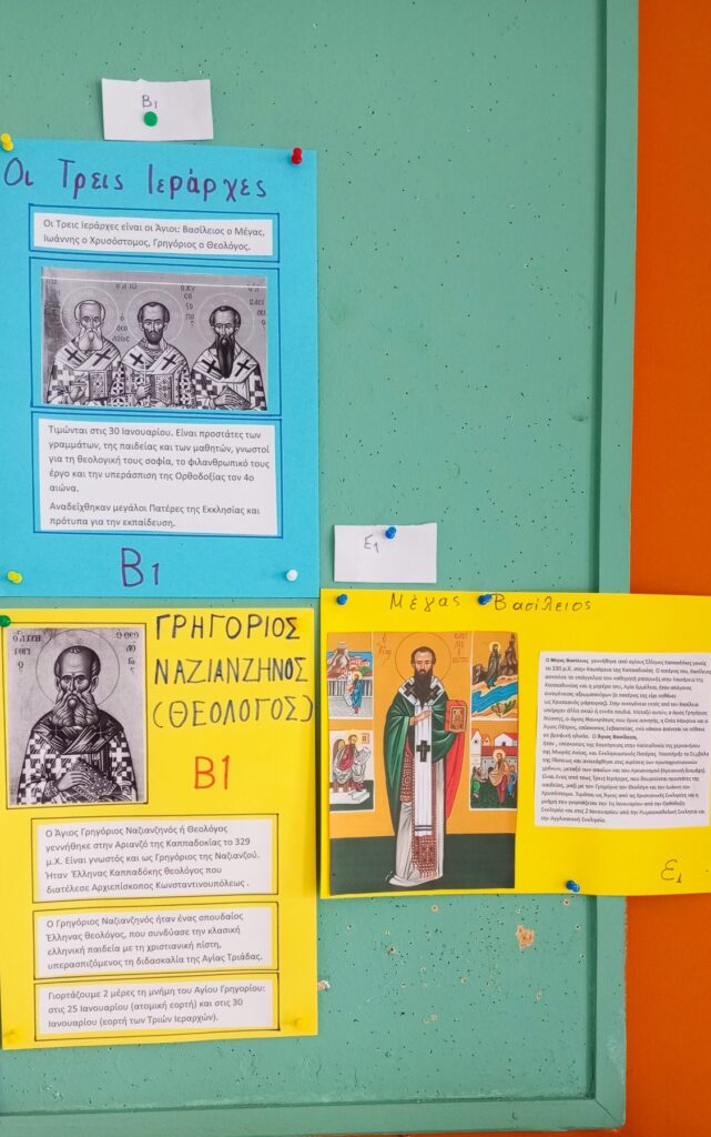 Αφιέρωμα στους Τρεις Ιεράρχες από το Στ2, την Α, τα τμήματα της Β τάξης και το Ε1.